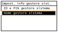 Se si tenta di accedere a <Impostazioni rete> o <Impostazioni gestione sistema> quando è abilitato solo l'ID gestore sistema, viene visualizzata la seguente schermata di accesso: