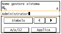 Immettere fino a 32 caratteri per il Nome gestore sistema, quindi toccare <Applica>. Immissione di testo