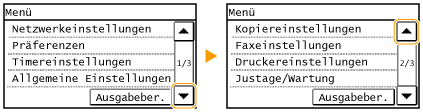 , um auf dem Bildschirm einen Bildlauf durchzuführen. Der Bildschirm ändert sich Seite um Seite, und die Seitennummer wird in der Bildlaufleiste angezeigt.