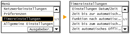 Informationen zum Wechseln des Bildschirms, der automatisch angezeigt wird, wenn am Gerät eine bestimmte Zeit lang keine Funktion ausgeführt wurde: