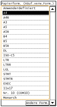 Papierformate ohne Haken werden auf dem Bildschirm <Papierformat (Andere Formate)> angezeigt.