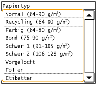 Wählen Sie den Typ des eingelegten Papiers aus.