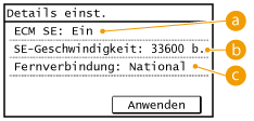 Sie können auch detaillierte Einstellungen für Empfänger über <Menü>  <Faxeinstellungen> vornehmen. Die über <Adressbuch> vorgenommenen Einstellungen werden jedoch für die detaillierten Einstellungen von im Adressbuch gespeicherten Empfängern aktiviert.