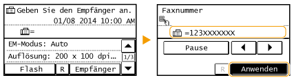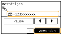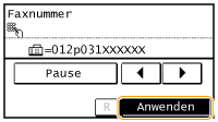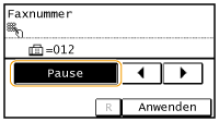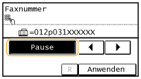 Tippen Sie auf <Pause>, um am Ende der Faxnummer erforderlichenfalls eine Pause einzufügen.