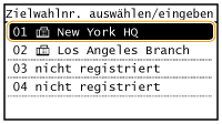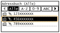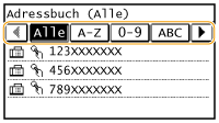 Zeigt alle im Adressbuch gespeicherten Empfänger an. Erläuterungen zu den Markierungen neben den Empfängern finden Sie unten.