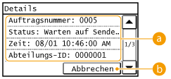 . Sie können das Versenden von Faxen auch nach der Überprüfung des Faxstatus abbrechen.