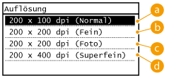 Sie können die für den jeweiligen Dokumententyp geeignete Auflösung wählen. Bei einer höheren Auflösung wird das Bild klarer, aber das Senden dauert länger.