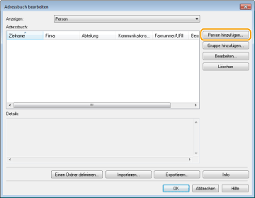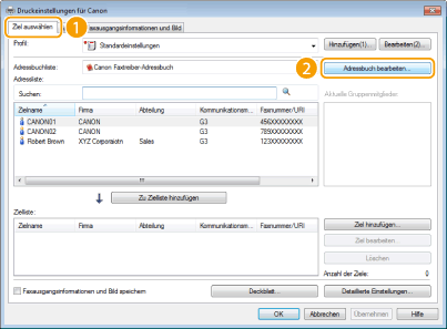 Wenn Sie gespeicherte Empfänger bearbeiten oder löschen wollen, wählen Sie den Empfänger aus dem [Adressbuch] aus, und klicken Sie auf [Bearbeiten] oder [Löschen].