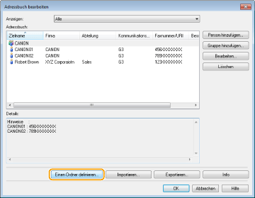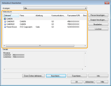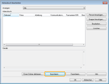 Importieren/Exportieren von Adressbuchdaten über den Faxtreiber