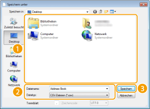 Speichern Sie die Adressbuchdaten in einem Ordner wie [Eigene Dateien], für den Sie über Schreibberechtigung verfügen.