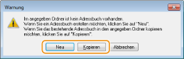 Klicken Sie auf [Neu], wenn Sie ein neues Adressbuch erstellen möchten, oder auf [Kopieren], um ein vorhandenes Adressbuch in den angegebenen Ordner zu kopieren.