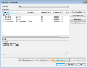 Exportieren von Adressbuchdaten