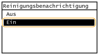 Zur Anzeige einer Meldung, wenn sich auf dem Scanbereich Schmutz befindet, setzen Sie <Reinigungsbenachrichtigung> auf <Ein>.
