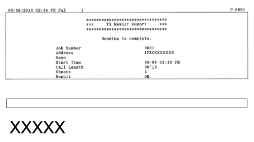 "OK" zeigt an, dass die Übertragung erfolgreich beendet wurde, "NG" und drei Ziffern (ein Fehlercode) zeigen an, dass die Übertragung fehlgeschlagen ist (