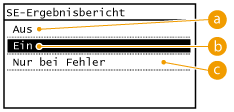 Wählen Sie diese Einstellung, wenn ein SE-Ergebnisbericht nur bei einem Sendefehler gedruckt werden soll.