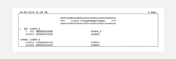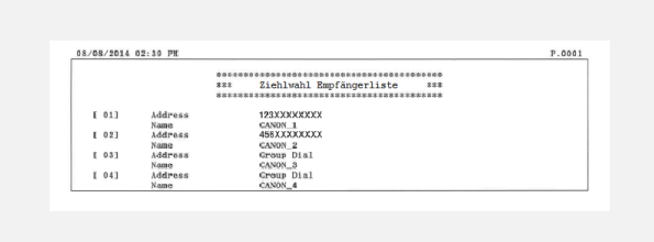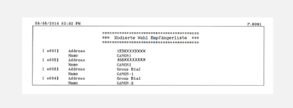 Sie können eine Liste der unter <Kodierte Wahl>, <Zielwahl> und <Gruppenwahl> im Adressbuch gespeicherten Empfänger drucken.