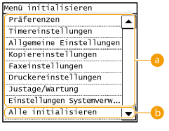 Erläuterungen zum Initialisieren der Einstellungen in <Netzwerkeinstellungen> und <Einstellungen Systemverwaltung> finden Sie in Initialisieren der Einstellungen Systemverwaltung.