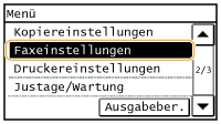 Zu allen Einstellungen zum Faxen ist eine kurze Erläuterung angegeben. Die Standardeinstellungen sind mit einem Kreuz (