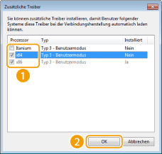 Aktivieren Sie das Kontrollkästchen für die verwendete Systemarchitektur der anderen Computer, und klicken Sie auf [OK].