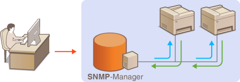 Wenn die SNMP-Verwaltungssoftware auf einem Computer im Netzwerk installiert ist, können Sie damit das Gerät von diesem Computer aus konfigurieren, überwachen und steuern. Weitere Informationen dazu finden Sie im Handbuch zur verwendeten Verwaltungssoftware.