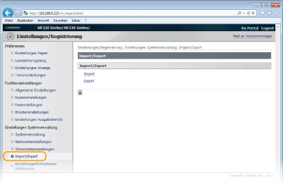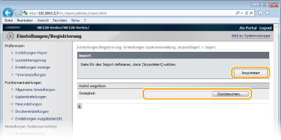 Die Adressbuchdaten im Gerät können auf Ihrem Computer gespeichert werden (exportieren). Auf Ihrem Computer gespeicherte Daten können auch im Gerät gespeichert werden (importieren). Sie können die Empfänger im Adressbuch ganz einfach auf mehrere Geräte kopieren.* Zur Verwendung dieser Funktionen müssen Sie sich im Systemmanager-Modus angemeldet haben.