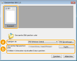 Wenn Sie in Schritt 1 die Option [PDF] gewählt haben, aktivieren Sie das Kontrollkästchen [Gescanntes Bild bestätigen].