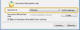 Wenn Sie [JPEG/Exif] wählen, können Sie beim Speichern Informationen wie das Datum oder Kommentare zu JPEG-Dateien hinzufügen. Wählen Sie das gescannte Bild, klicken Sie auf [Exif-Einstellungen], und geben Sie die Kommentare auf dem angezeigten Bildschirm ein.