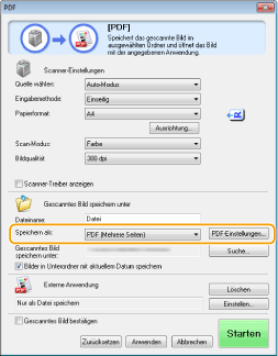Wenn Sie [PDF (Seite hinzufügen)] für [Speichern als] (