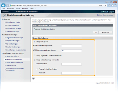 Aktivieren Sie das Kontrollkästchen [Proxy verwenden], und legen Sie die erforderlichen Einstellungen fest.