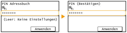 Das Adressbuch können Sie so einstellen, dass Anwender zum Hinzufügen neuer oder zum Bearbeiten vorhandener Einträge eine PIN eingeben müssen. Durch das Festlegen einer PIN für das Adressbuch können Sie das Risiko verringern, dass Dokumente an unbeabsichtigte Empfänger gesendet werden, da Änderungen am Adressbuch dann nur von Anwendern vorgenommen werden können, die die PIN kennen.