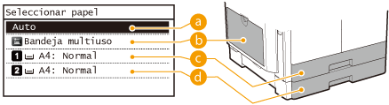 En primer lugar debe especificar el tamaño y el tipo de papel cargado en el origen del papel.