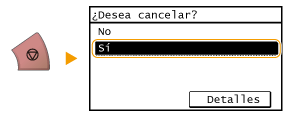 Si desea cancelar el envío de faxes inmediatamente después de pulsar