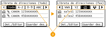 La libreta de direcciones le permite especificar un destino seleccionándolo en la lista de destinos registrados o buscándolo por nombre en el caso de los destinos con nombres de destinatario.