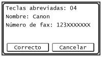 Pulse <Sí>.Si especificó Marcación por Grupo en el paso 2, aparecerá en la pantalla "XX destino(s)". Si pulsa <Número de destinos: >, aparecerán los destinos registrados en el grupo.