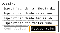 Si <Restringir reenvío desde registro> está establecido en <On>, no podrá utilizar esta función. Deshabilitación del uso de destinos utilizados anteriormente (imageRUNNER 2204F)