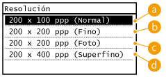 Puede seleccionar la resolución más adecuada según su tipo de documento. Cuanto mayor sea la resolución, más nítida será la imagen, pero más tiempo tardará en enviarse.