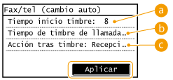 Cuando se selecciona <Fax/tel (cambio auto)>