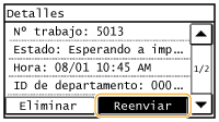 Siempre que la función Recepción en Memoria esté desactivada, los documentos permanecerán en la memoria incluso tras haberse reenviado, y el mismo documento podrá reenviarse todas las veces que se desee.