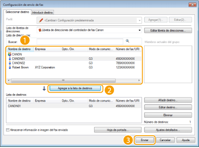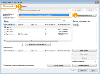 Seleccione la libreta de direcciones de [Lista de libretas de direcciones].