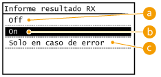 Seleccione esta opción para imprimir un Informe resultado RX solo cuando se produzca un error de recepción.
