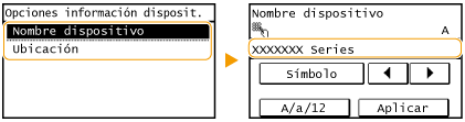 <Opciones de información del dispositivo>