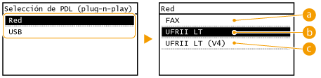 Seleccione <Red> o <USB>