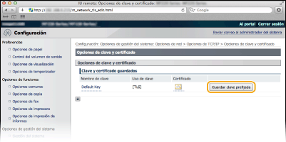 Haga clic en [Guardar clave prefijada] en la parte derecha del par de claves que desee utilizar.