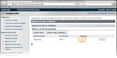 [Opciones de clave y certificado] (para pares de claves) o [Opciones de certificado de CA] (para certificados CA).