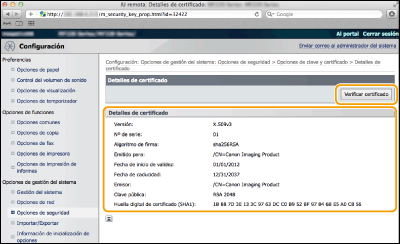 Los detalles del certificado pueden visualizarse en esta pantalla.