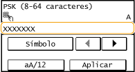 Introduzca la clave de red utilizando las teclas numéricas, y pulse <Aplicar>. Introducción de texto