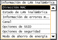 <Información de LAN inalámbrica> y seleccione la opción que desee visualizar.