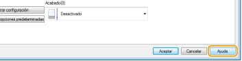Si hace clic en [Ayuda] en la pantalla del controlador de impresora aparecerá la pantalla Ayuda. En esta pantalla puede ver información detallada que no se incluye en el e-Manual.