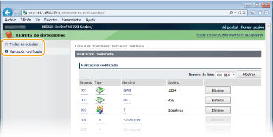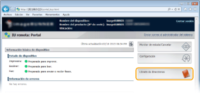 Registro de la libreta de direcciones desde la IU remota (imageRUNNER 2204F)