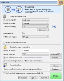 ![]() No podrá escanear mientras aparezca la pantalla de configuración de MF Toolbox. Cierre la pantalla antes de escanear.